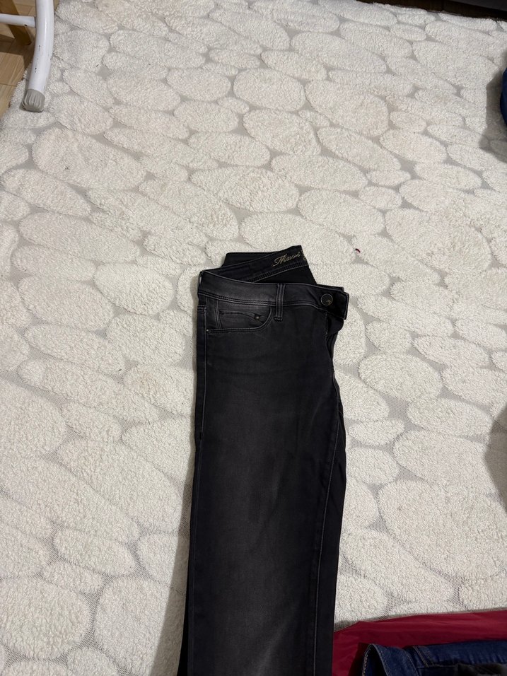 Siyah, klasik kesim kadın jean, ve günlük kullanıma uygundur. Rahat sokak stili için idealdir. sadece bi kayışı kopmuş öndeki