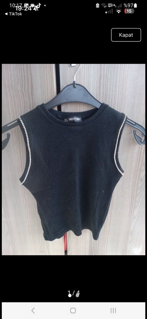 Kısa boy, siyah kolsuz ve yuvarlak yaka, yumuşak sentetik triko kumaştan yapılmış, günlük rahat sokak stili için uygun dar kesim bir kadın atlet. Marka temsili