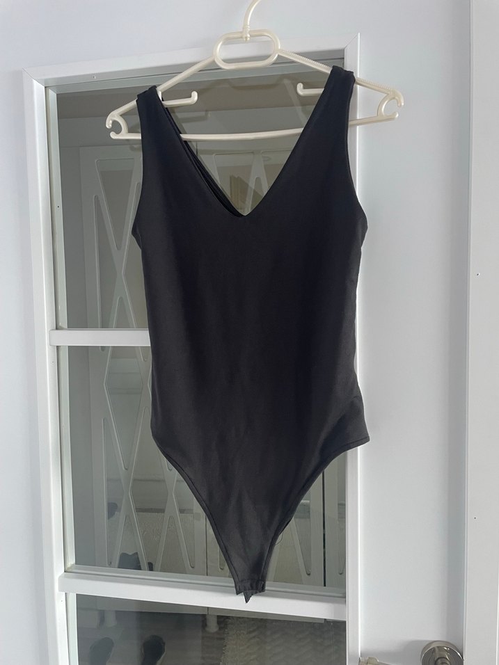 Siyah renkli, kolsuz, V yakalı ve vücuda oturan kesime sahip midi uzunlukta çıtçıtlı bluzMinimalist ve sokak modasına uygun, günlük kullanıma elverişli. 2 kez giyildi herhangi bir deformemesi kusuru olmayıp yeniden farksızdır renge tam siyah olup kumaşı esnektir. Beden yazmıyor. S ve M bedene uygundur
