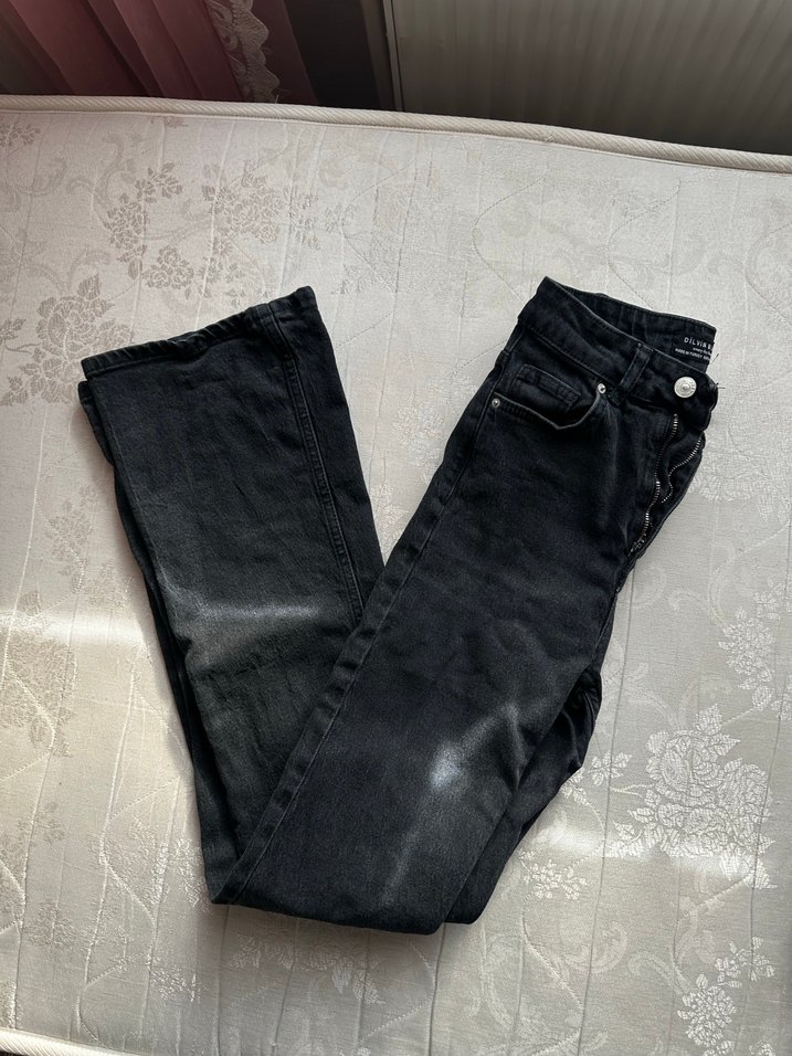 Siyah Kadın Kot Pantolon - Fitted, Midi Boy