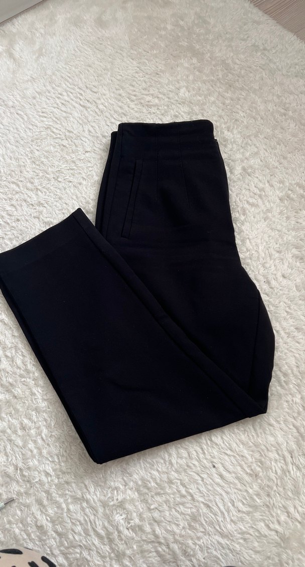 Siyah midi uzunlukta, regular fit kesime sahip, ipeksi kumaştan kadın pantolon. Ofis ve günlük sokak tarzına uygun, zahmetsiz şıklık sunar.