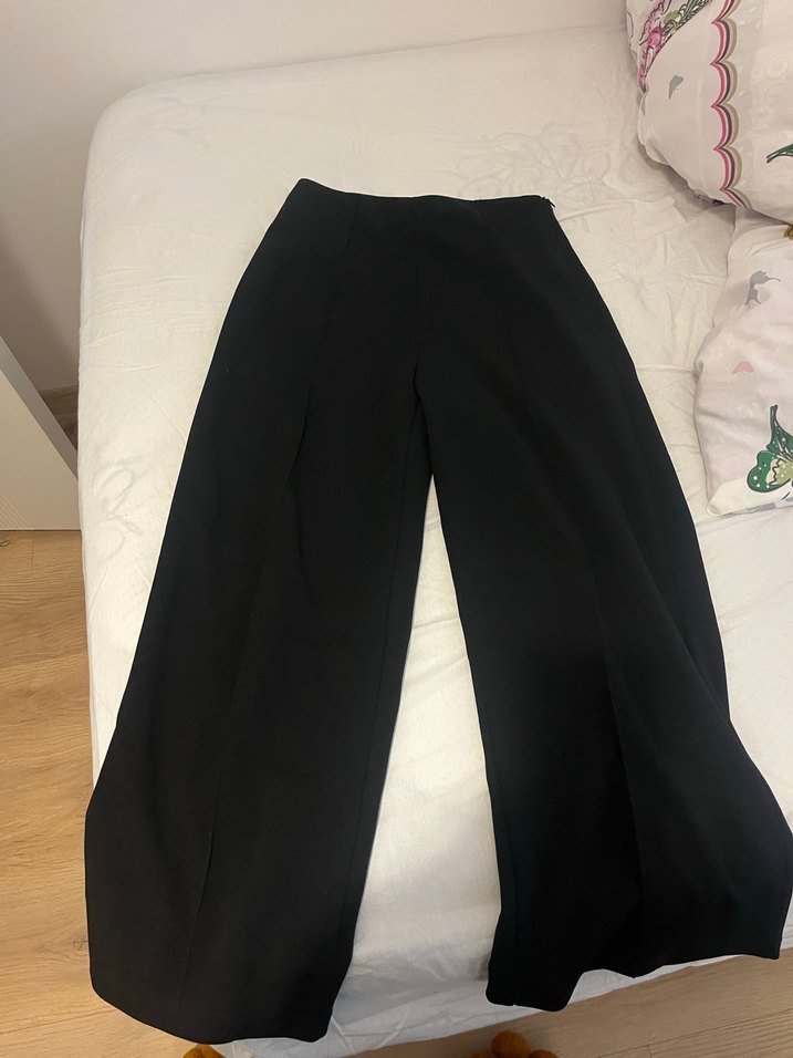 Uzun boy, siyah kadın kumaş pantolon, regular fit ve ipeksi dokusu ile ofis için zahmetsiz şıklık sunar.