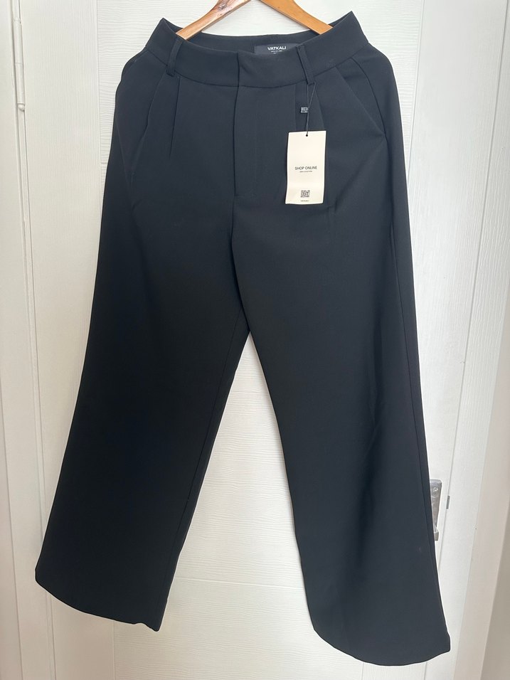 Siyah boy, regular fit kumaş pantolon, ofis için şık ve rahat bir seçenek sunar. S beden tok bir kumaşı vardır Kendime aldığım beden olarak uymadığı için uyguna listelediğim bir üründür