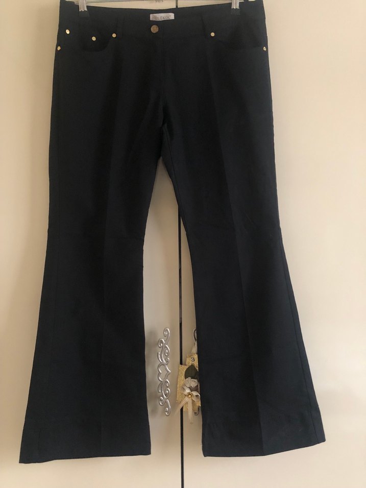 46*56*101 CM Siyaha renkte, regular fit midi uzunluğunda kadın kumaş pantolon. Sentetik kumaştan, ofis ve günlük sokak stiline uygun.