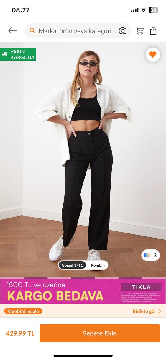 Siyah kadın pantolon. Günlük kullanım ve iş ortamı için uygun rahat ve şık meşhur Trendyol pantolonu. İade süresi geçtiği için iade edemedim kilo aldığım içinde de bana olmuyor bu sebeple satıyorum. 45 kilo ve altı tercih etmeli.