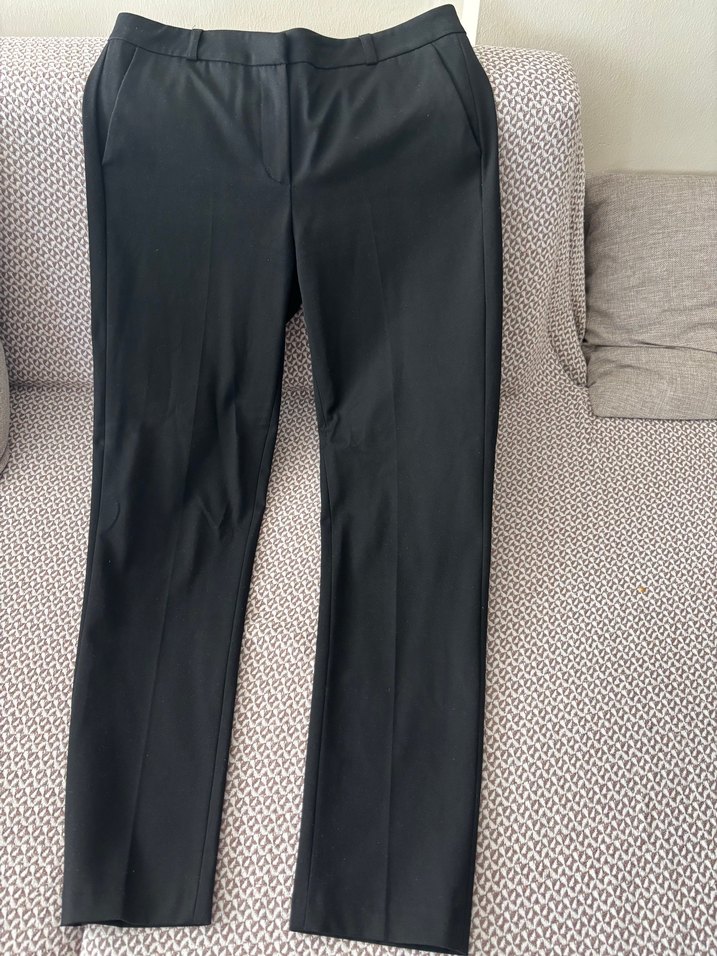 Siyah ve regular fit kesime sahip kadın kumaş pantolon. Midi boy, iş ve ofis ortamları için uygun normcore tarzda. Koton markadır.34 bedendir ama 36 bedene de uyar.2 kere giyildi.