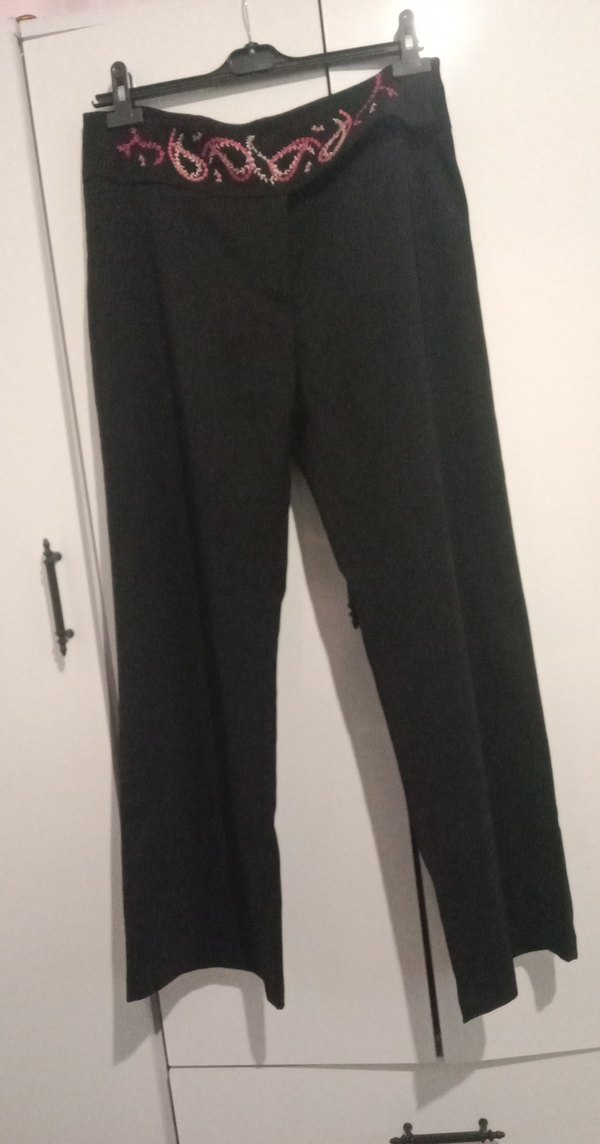 Siyah, kemerli, midi boy kadın kumaş pantolon, ipeksi dokuda ve düzenli kesime sahip, ofis kullanımı için uygundur.