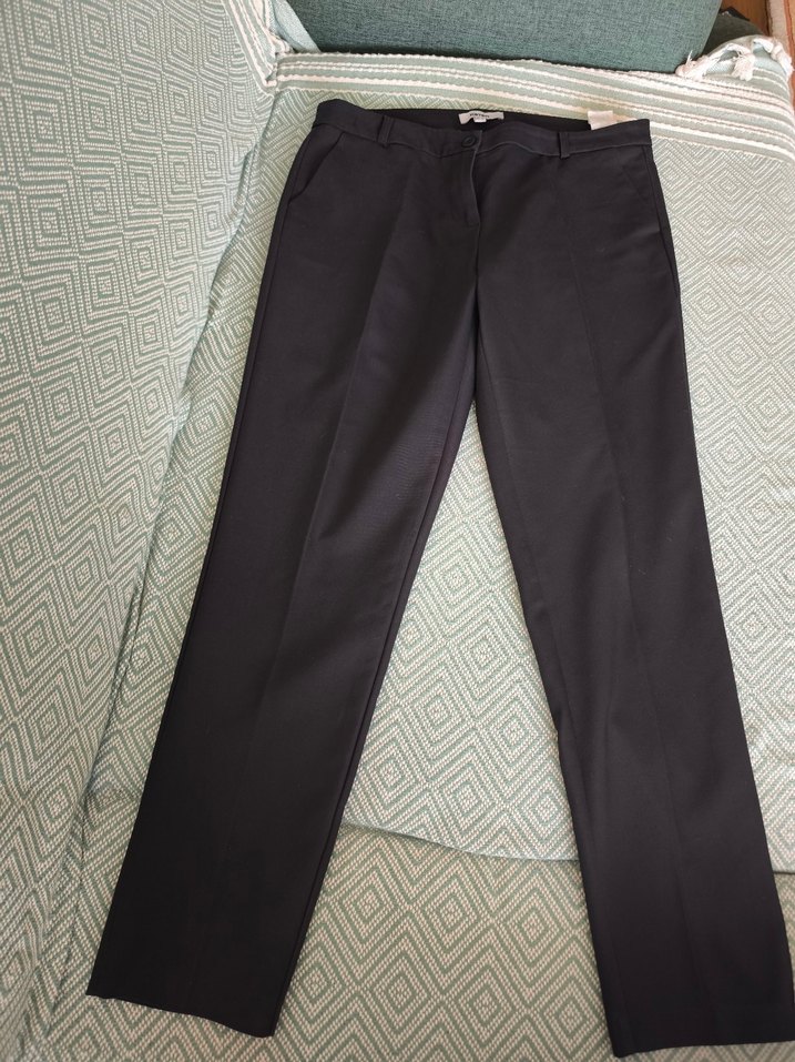 kadın kumaş pantolon. Sentetik kumaştan üretilmiş, midi boyda ve iş ortamına uygun bir tasarıma sahip. küçük bir defosu var, fotoğraflardan belirtirdim. defosu çok belli olmuyor ama yine de uygun tutuyorum