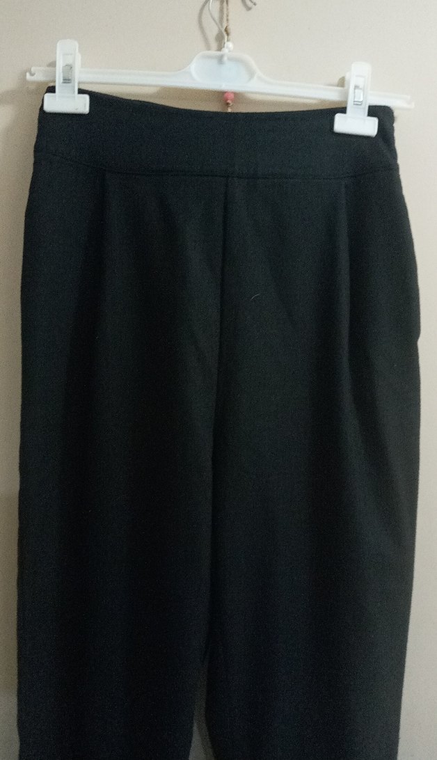 Siyah, düz desenli,boy kadın kumaş pantolon. Rahat kesim ve yumuşak, sıcak kumaştan üretilmiştir, ofis kullanımı için uygundur.