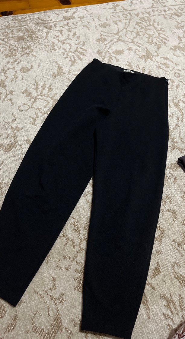 Siyah, düz, rahat kesim midi boy kadın kumaş pantolon. Yumuşak ve sıcak dokusuyla ofis için şık ve sade bir seçim.