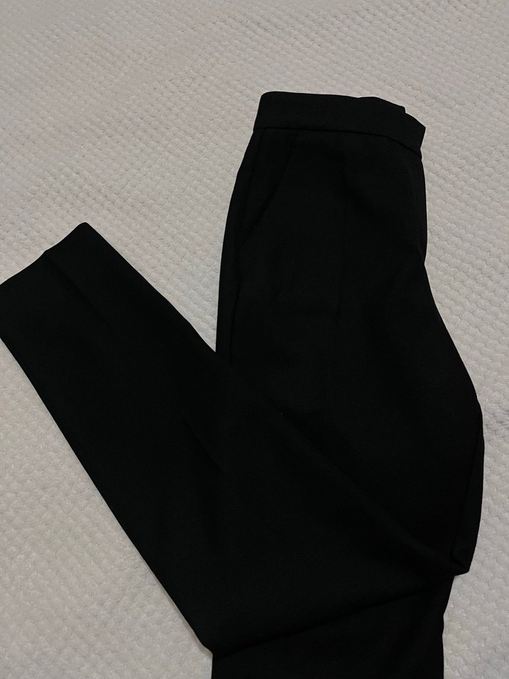 Siyah, düz renk kadın kumaş pantolon, midi boy ve rahat kesim. Ofis için şık ve rahat, ipeksi kumaştan üretilmiştir.