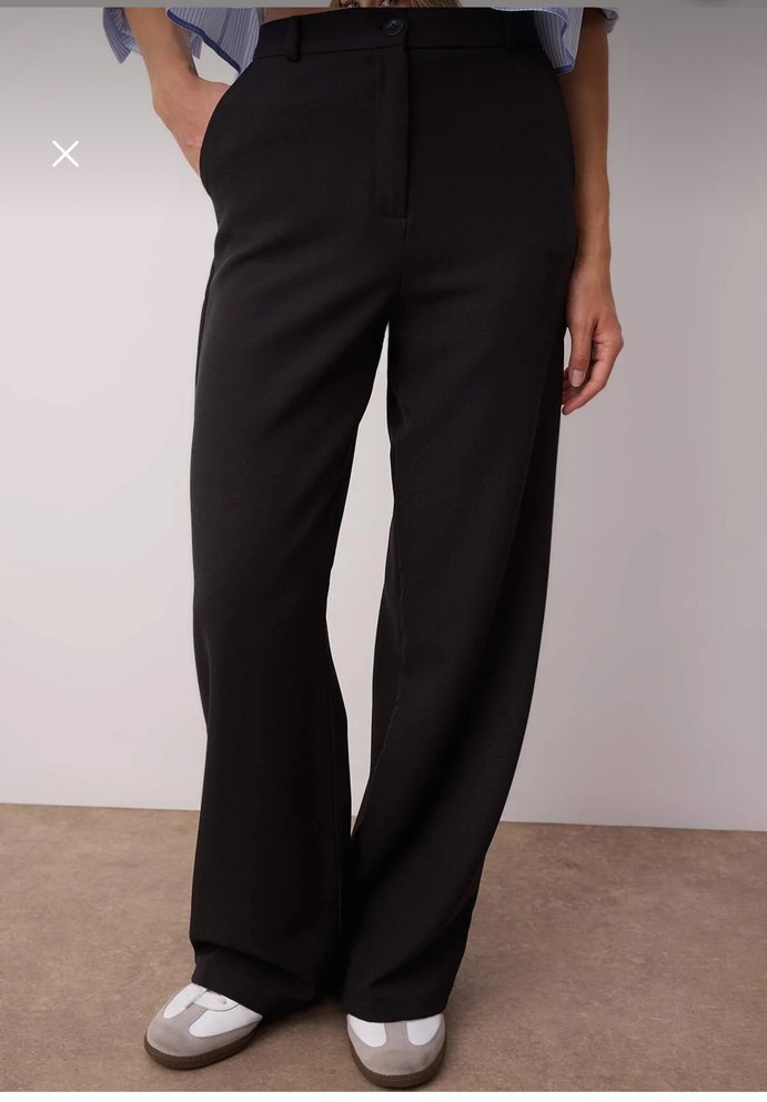 Kadınlar için siyah kumaş pantolon Düz kesim Sol bacakta görseldeki gibi bir şey var Çakmak yüzünden 2 3 defa giyildi