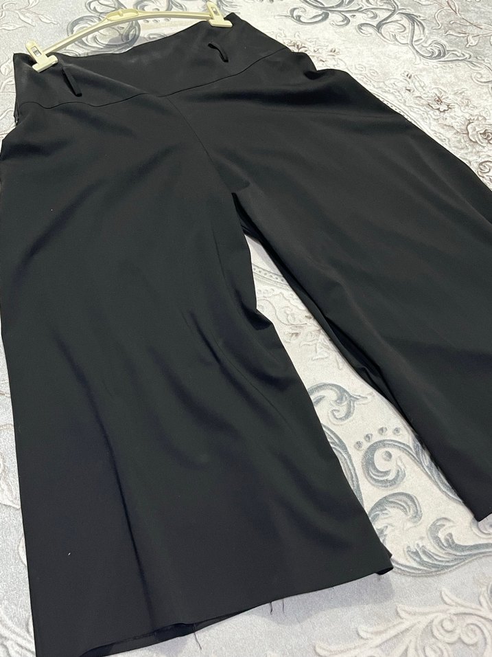 Siyah, uzun boy kadın kumaş pantolon, regular fit ve yırtmaç detaylı, sentetik kumaştan üretilmiştir. Ofis ve günlük sokak stili için uygundur. Yandan fermuarlı