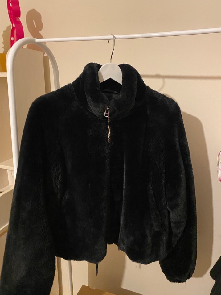 siyah kürk mont, yüksek yakalı ve uzun kolludur. yumuşak tüylü, cepli, iç astarlıdır. deformesi yoktur. 4-5 kez giyilmiştir.