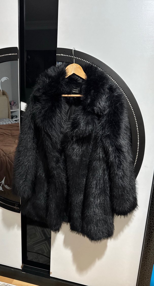 Siyah, kürk detaylı, uzun kollu ve yaka kesimli bu midi boy mont, günlük kullanıma uygun cesur ve rahat gotik tarz sunar.