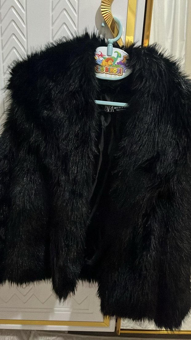 Uzun kollu, siyah kürk detaylı, normal uzunlukta ve kesimli kadın kaban, rahat ve şık tasarımıyla günlük kullanıma uygundur.