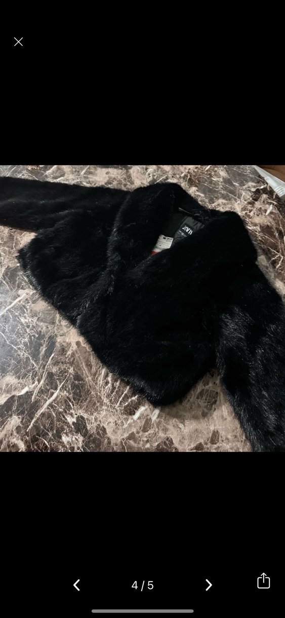 Siyah, kürk detaylı, uzun kollu ve mini kesim, yumuşak sentetik kumaştan yapılmış dar kesim kadın cekettir. Gotik stil ve günlük kullanım için uygundur.