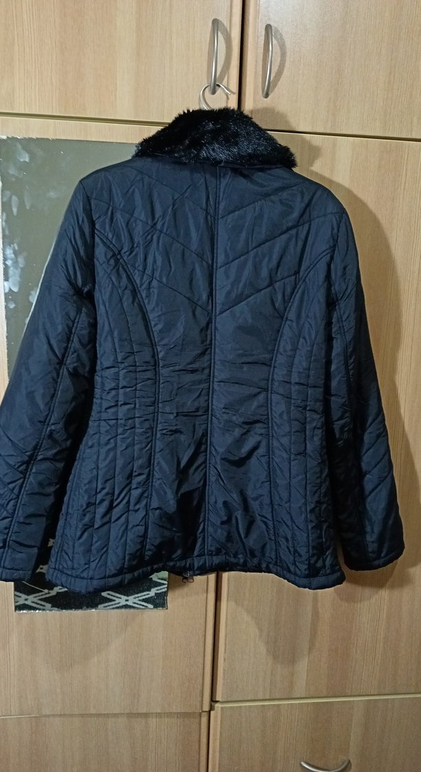 Siyah, kürklü yakalı, uzun kollu ve midi boy kadın kaban. Sokak stiline uygun, rahat ve şık bir kışlık dış giyim ürünü.