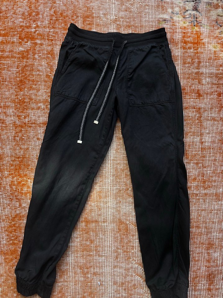 Siyah, pamuklu, kuşaklı ve normal boyda, rahat kesim kadın pantolonu, gündelik kullanıma uygun şık ve rahat bir görünüm sunar.