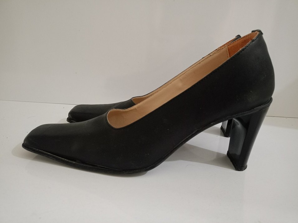 Siyah Kadın küt burun vintage ayakkabı