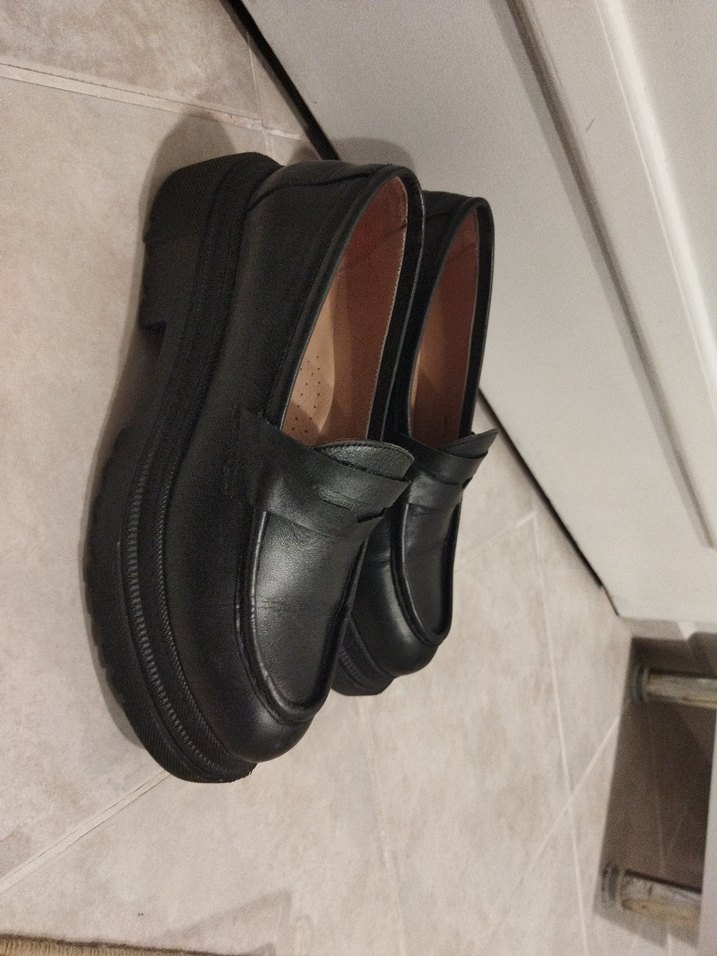 Siyah, , blok topuklu kadın loafer ayakkabılar. Klasik ve desensiz yapısıyla günlük kullanım için uygundur, gotik tarzda. marka temsilidir