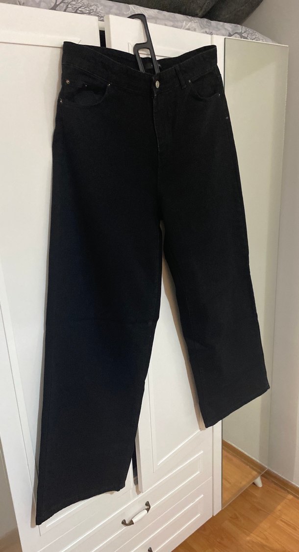Siyah renkli, loose fit ve midi boy denim kadın jean. Minimalist ve rahat normcore tarzıyla günlük kullanıma uygun.