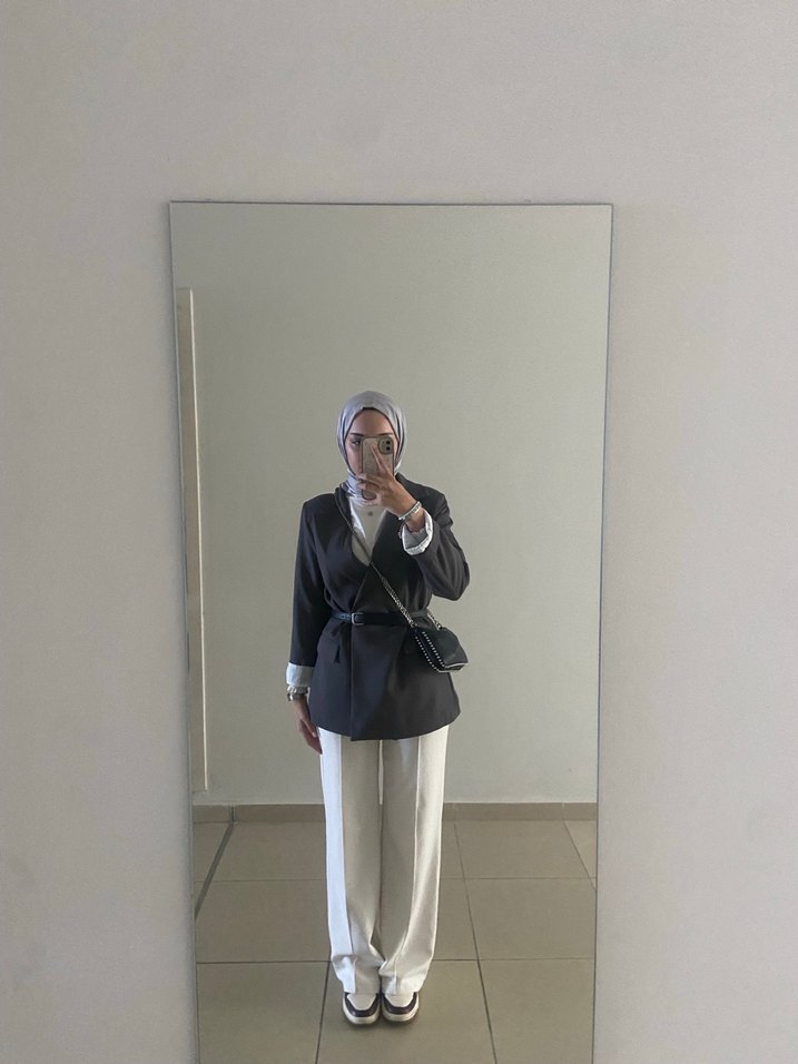 Siyah midi blazer, normal kesim ve yakalı. Ofis için sade, alçakgönüllü stil sunar. İnce askılı, ipeksi kumaştan, zahmetsiz şıklık sağlar.