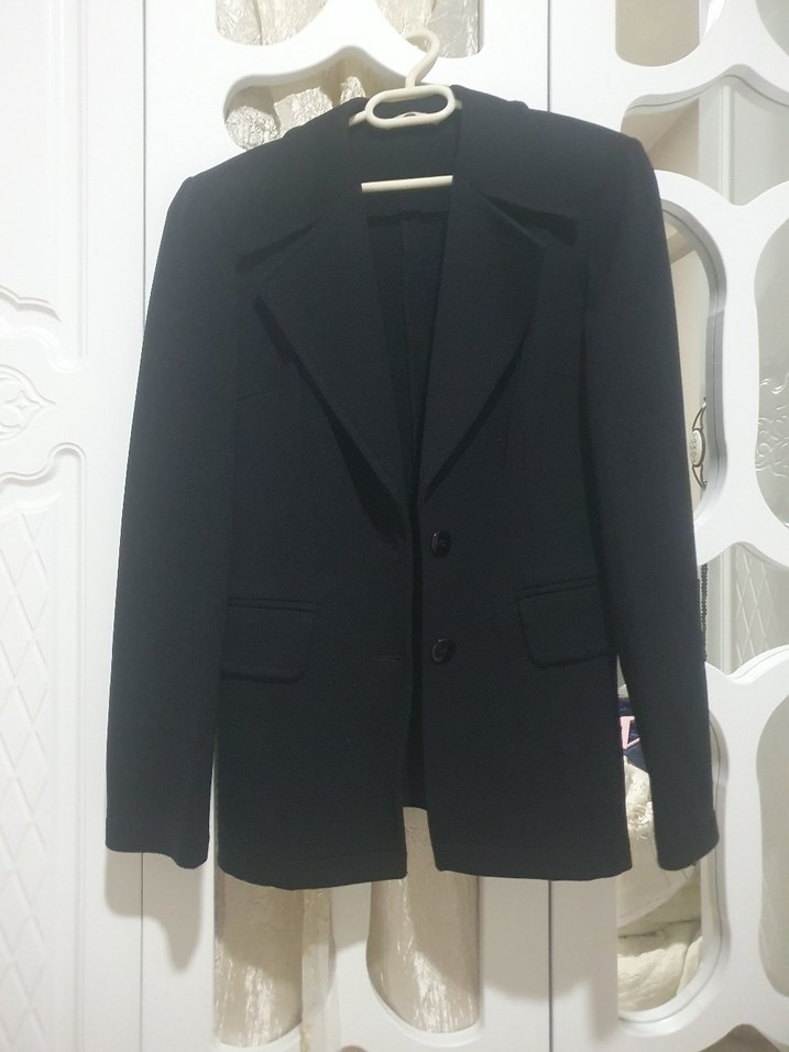 Siyah renkte, düğmeli ve kesik yaka detaylı, normal kesim uzun kollu kadın midi blazer ceket. Ofis kullanımı için uygun, sentetik dokulu kumaştan.likralı.