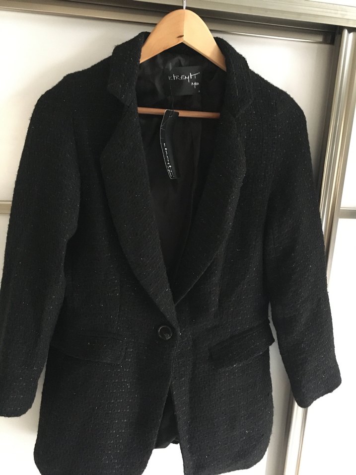 Siyah kumaştan, normal midi boyda, düğmeli, regular fit kadın blazer. Ofis kullanımı için uygun, kesimi notched lapel yakalıdır.