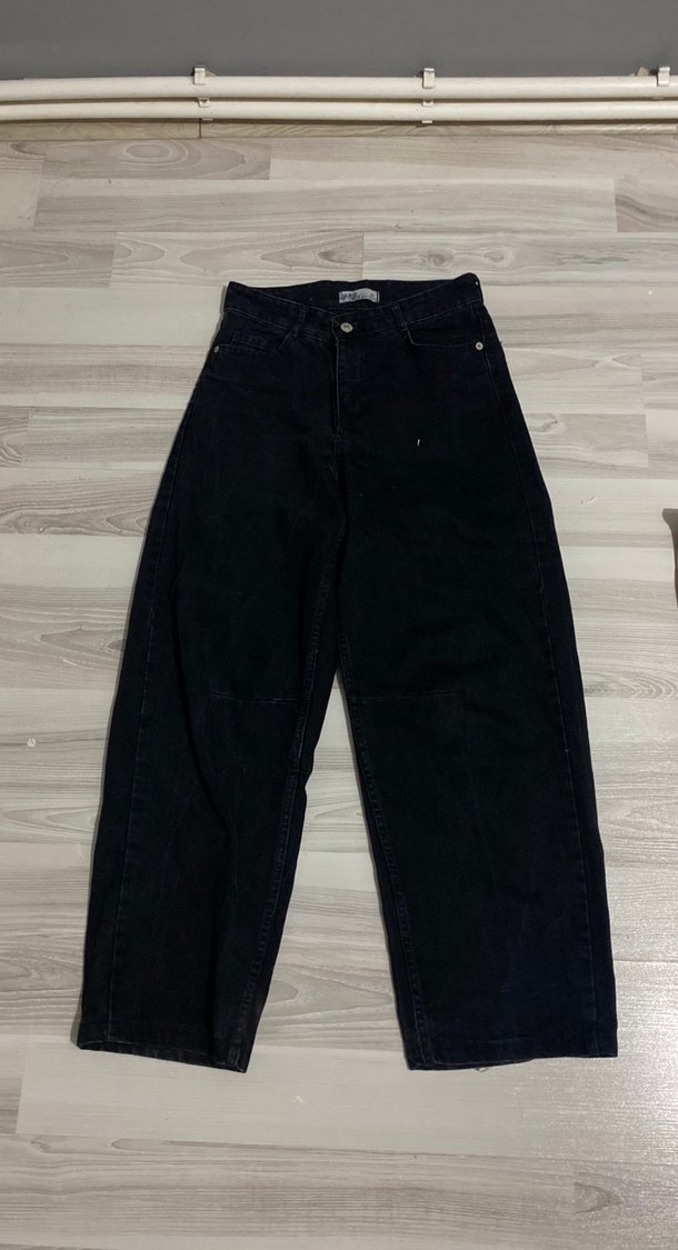 Siyah renkte, bol kesim ve midi boyda kot pantolon. Denim kumaştan üretilmiş, günlük kullanım için rahat ve şık görünüme sahip. 150 lerde iseniz alınız
