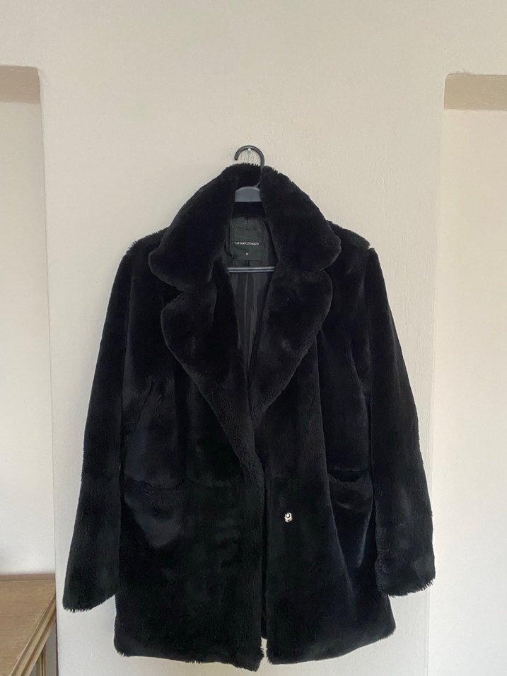 2-3 kere giyildi, hiçbir defosu yok, kalçayı kapatıyor midi boyda, Siyah suni peluş kürk. Rahat kesimi ve yumuşak dokusu vardır. #kadın #siyah #kaban #sunikürk #mont #ceket