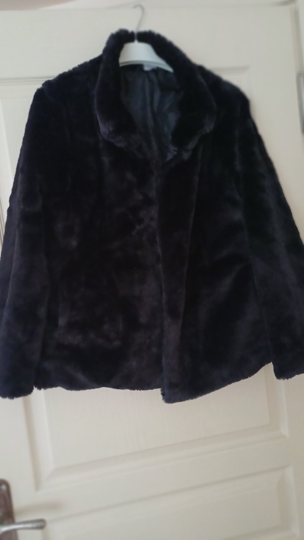 Siyah renkte, kürk detaylı yumuşak kumaştan yapılmış, normal boy midi mont. Notlu yaka ve uzun kollu, rahat kesimlidir. Ofis kullanımı için uygundur.