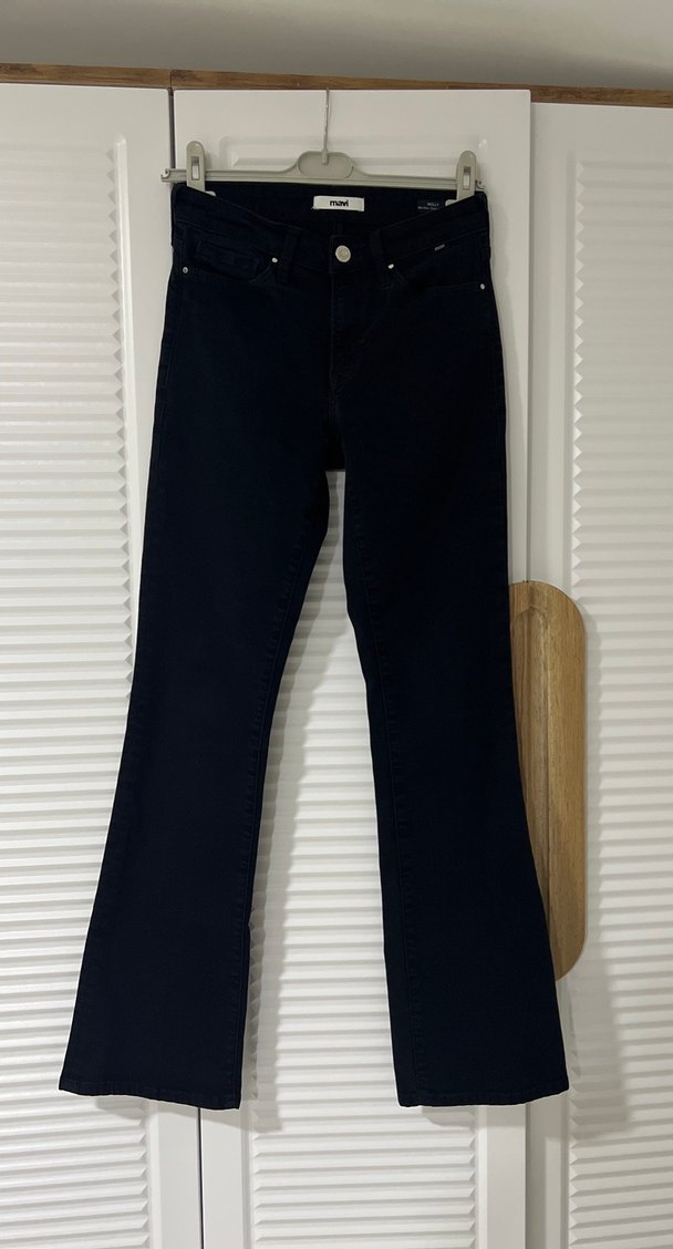 Siyah, regular fit, midi boy kadın jean. Denim kumaştan, pile detaylı. Günlük kullanıma uygun minimalist tarzda.