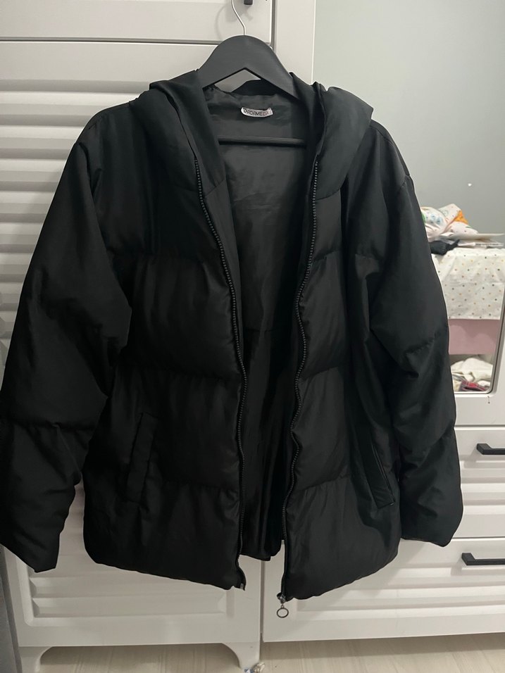 Elyafları dağıldığı için uygun fiyata bıraktım teknikleri var internette ama onla uğraşmak istemiyorum Siyah renk, yüksek yakalı, uzun kollu, düğmeli ve sıcak tutan kumaşlı kadın midi boy mont. Rahat kesimiyle günlük kullanıma uygundur.