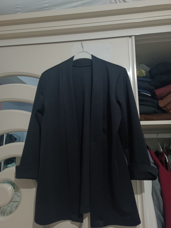 Siyah midi boy, notched lapel yakalı ve uzun kollu, drapeli tasarıma sahip, ofis için uygun regular fit kadın ceket.uzunluk 75 cm ikinkol arası 50 cm