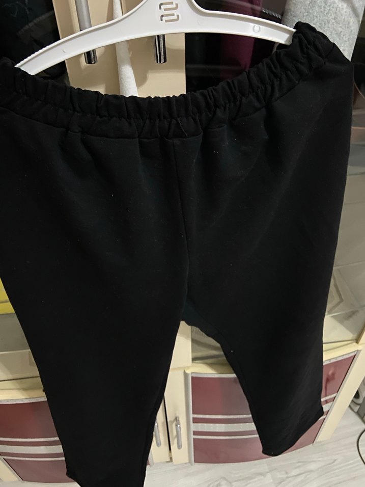 Sentetik kumaştan, esnek bel bantlı, siyah renkli, midi boy, dar kesim kadın pantolonu.