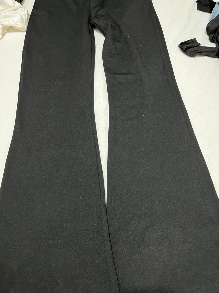 Siyah, kadınlar için tasarlanmış, midi boy ve düz kumaştan yapılmış, ispanyol paça kesim pantolon. Günlük kullanım için rahat ve şık.