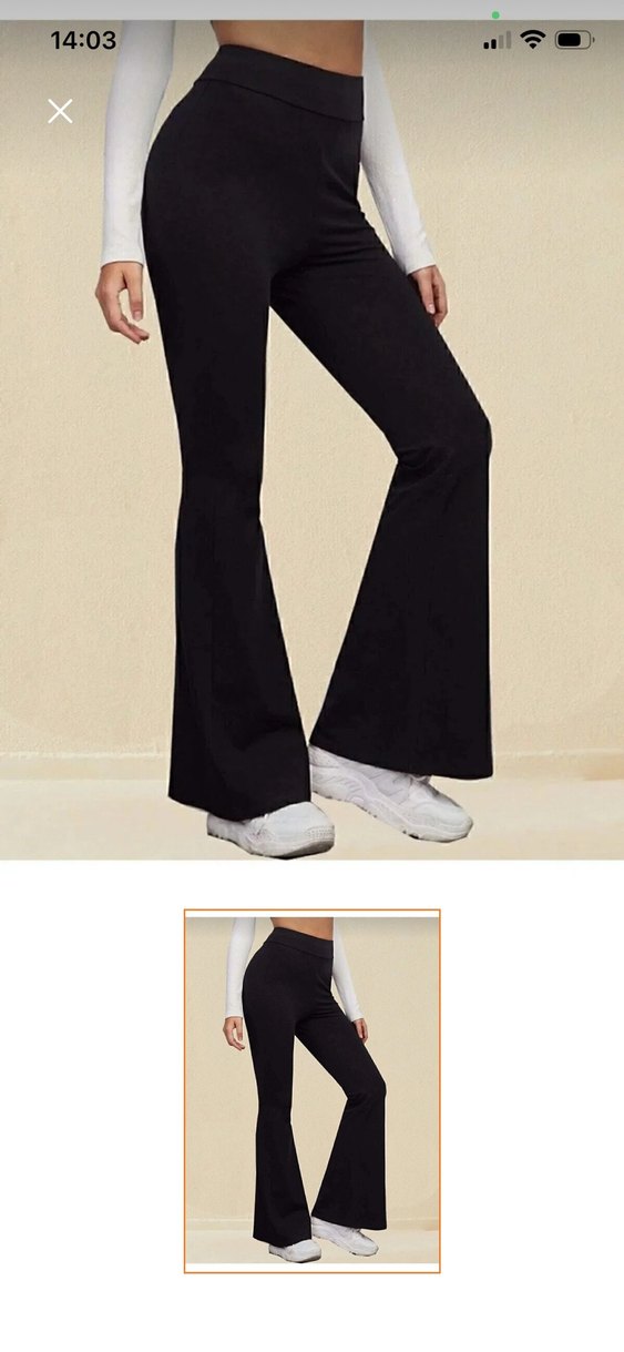 Siyah, midi boy, ispanyol paça kadın pantolon. Düz, sentetik kumaştan, rahat ve şık bir spor tarzı sunar.