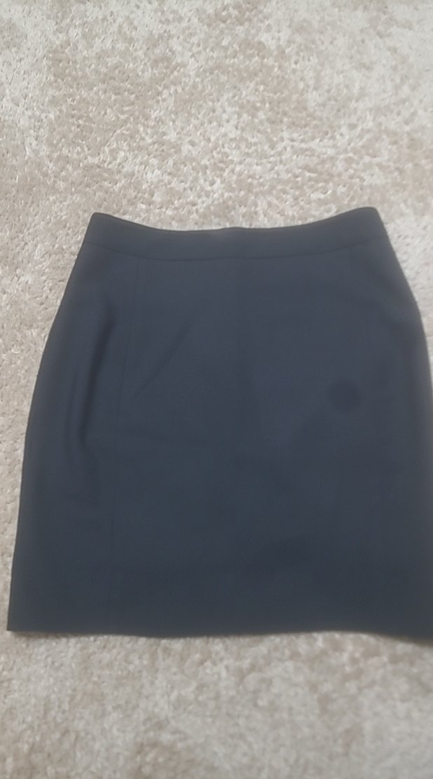 Düz siyah, midi boy kalem etek, yumuşak sentetik kumaştan, ofis kullanımı için uygun. İŞTEN AYRILDIĞIM İÇİN OFİS TARZI SAYILI GİYDİĞİM BAZI KIYAFETLERİMİ UYGUNA SATIYORUM