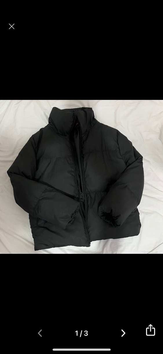 Siyah kışlık kadın montu, yüksek yakalı ve uzun kolludur. Yumuşak ve sıcak kumaştan üretilmiş, midi boyda makineye atıldığı için yünler dağıldı ama giyince belli olmuyo
