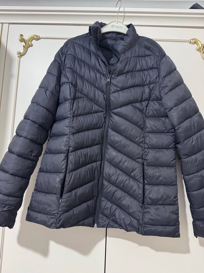 Fermuarlı, yüksek yakalı, sentetik kumaştan gri midi boy, fitted kadın kışlık mont. Strappy kollu ve günlük kullanıma uygun. ❄️