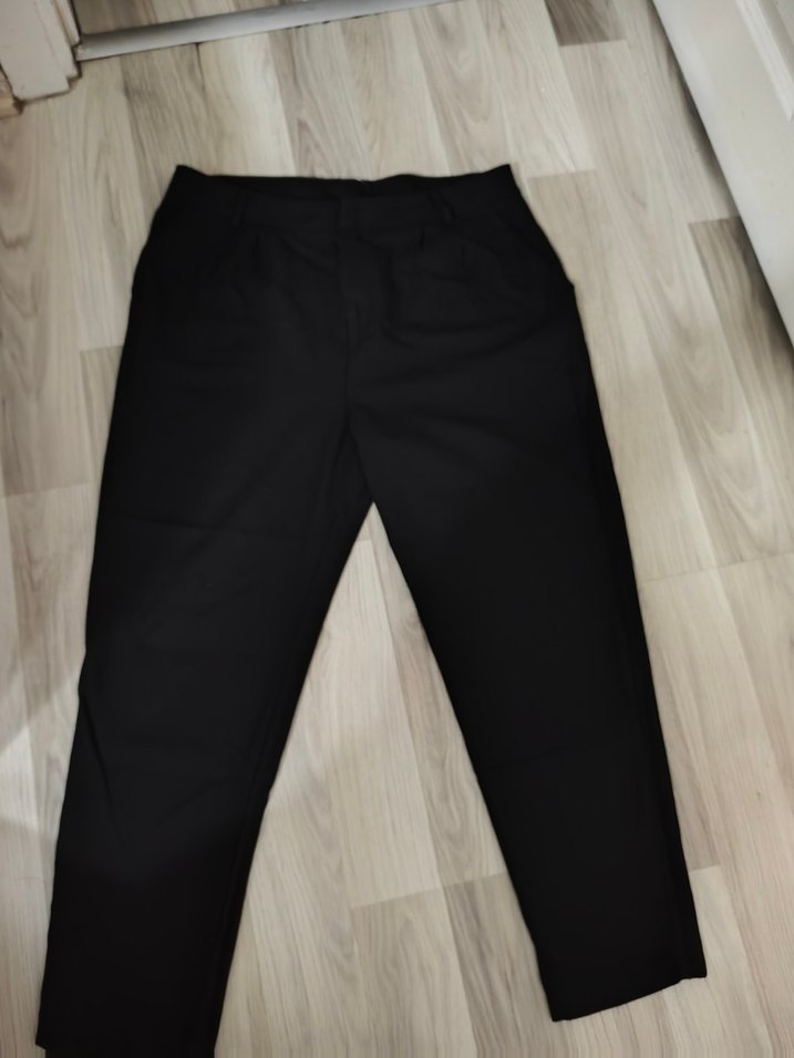 Düz siyah, midi boy, regular fit kadın kumaş pantolon. Sentetik kumaştan üretilmiş, gündelik kullanım için uygun, streetwear tarzında. Waikiki ürünü casual 42 beden
