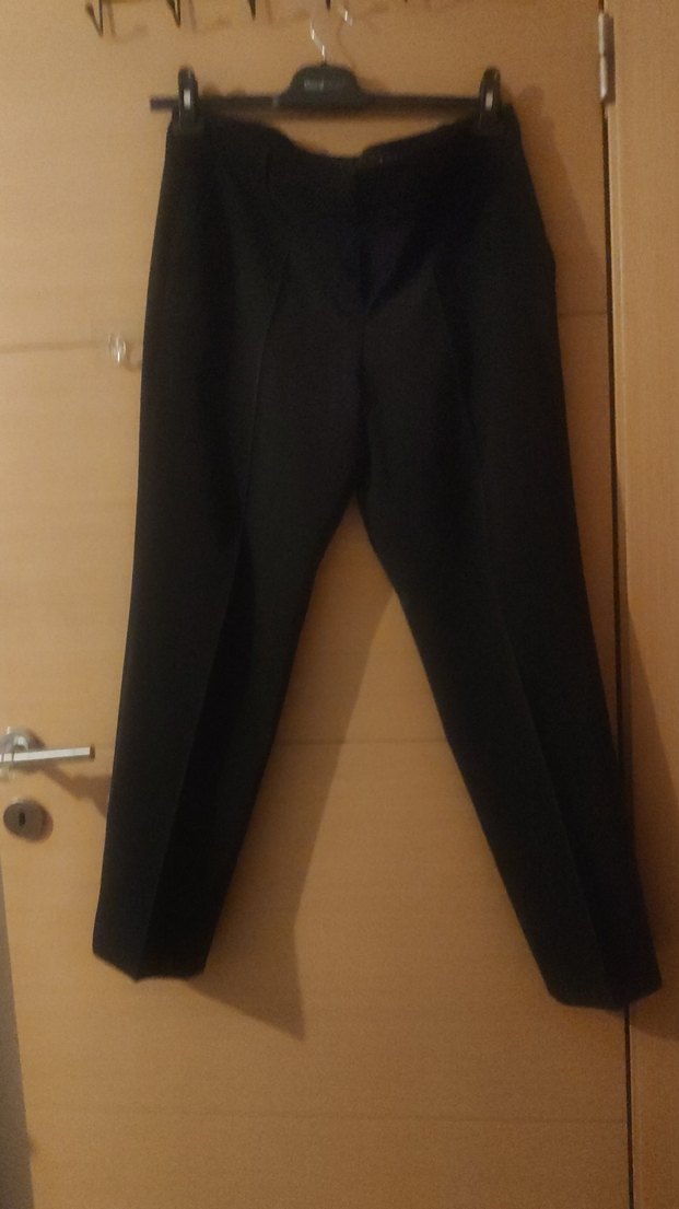 Siyah, midi boy, regular kesim kadın pantolon. İpeksi kumaştan, desen içermeyen, ofis ve sokak stiline uygun, zahmetsiz şıklık sunar.