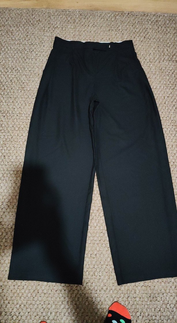 Siyah midi uzunlukta, regular fit kadın kumaş pantolon. Sentetik kumaştan, iş ortamı ve günlük şıklık için uygundur. tok kumaş