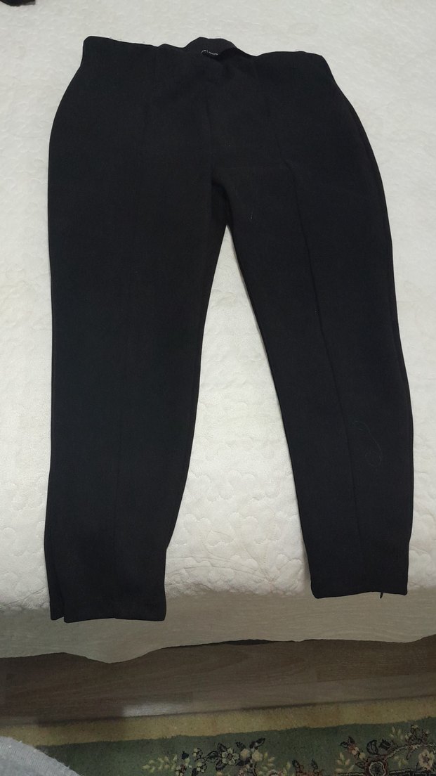 Siyah, midi boy, regular fit kadın kumaş pantolon, fermuarlı detaylı ve yumuşak dokulu, ofis kullanımı için uygun.