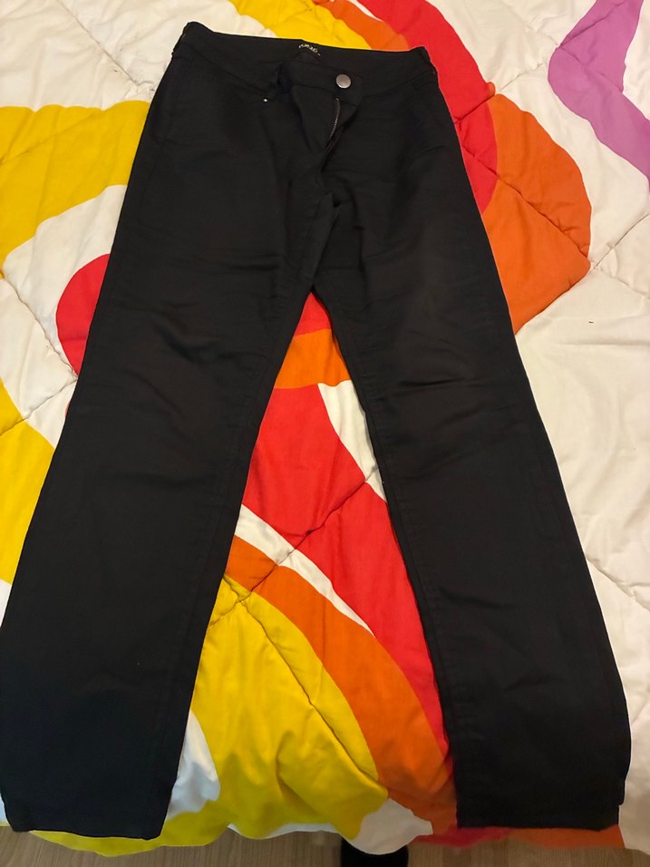 Siyah renkte, regular fit, midi boyda kumaş pantolon. Velcro detaylarıyla günlük ve sokak stiline uygun.