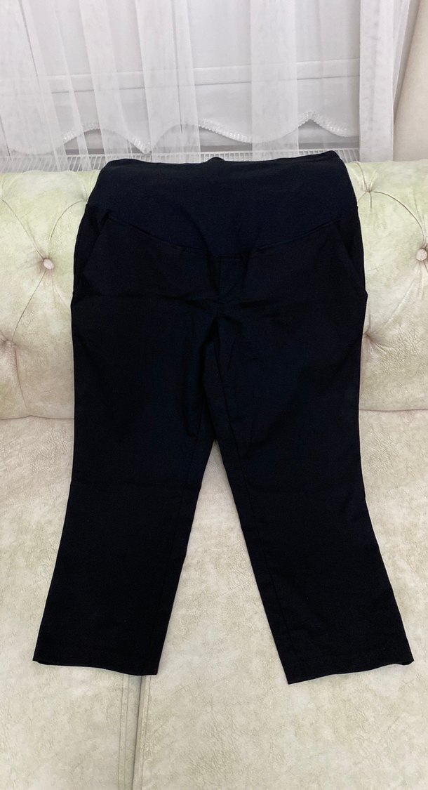 Siyah, midi boy, regular kesim, kemerli kadın kumaş pantolon. Ofis kullanımı için uygun, yumuşak sentetik kumaştan yapılmıştır.