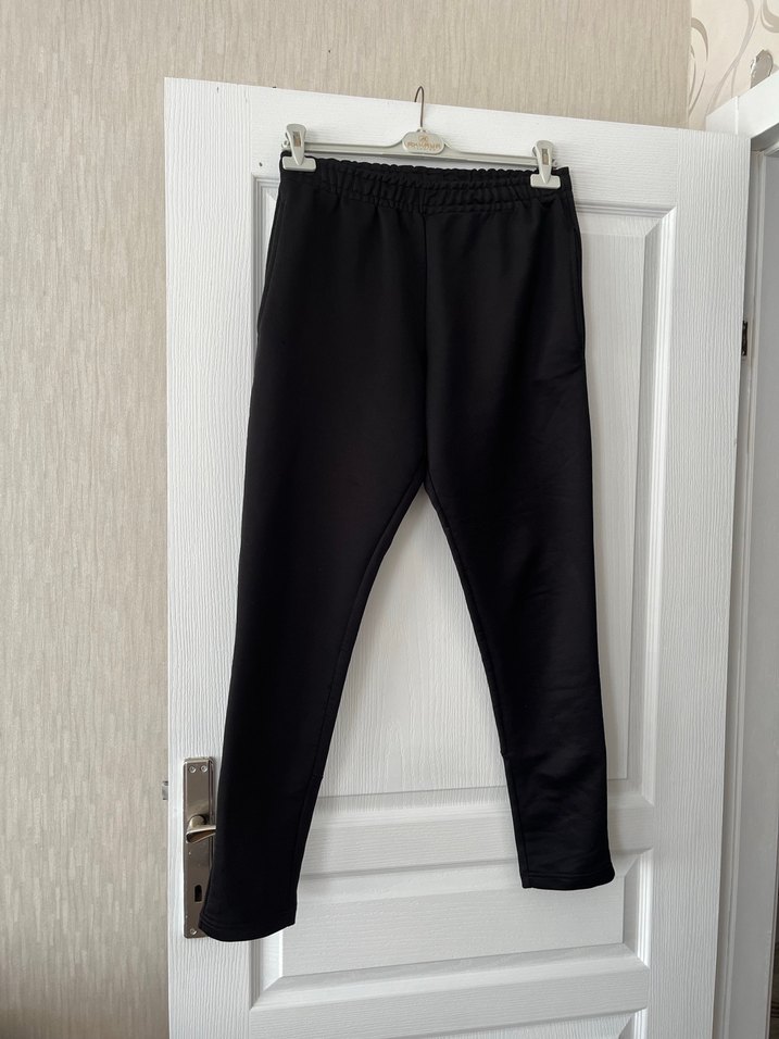 Siyah Kadın Midi Kumaş Spor Pantolon