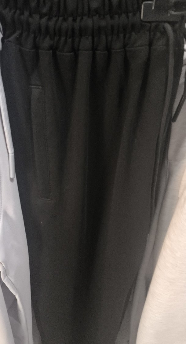 Siyah renk midi boy, bol kesim ve yırtmaç detaylı kadın kumaş pantolon. Sentetik kumaştan, günlük rahat kullanım için uygundur.