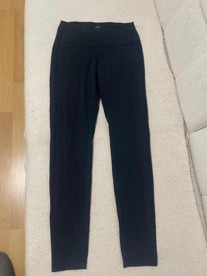 Siyah, vücuda oturan midi tayt, yumuşak sentetik kumaştan üretilmiş, günlük kullanım için rahat ve şık görünüme sahiptir.